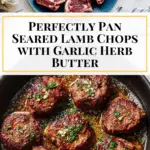This Pan Seared Lamb Chops recipe features tender, flavorful lamb chops seared to perfection in a cast iron skillet with fragrant garlic, rosemary, and thyme butter. The simple seasoning and cooking method highlight the natural richness of the lamb, resulting in a juicy, medium-rare finish that’s perfect for an elegant dinner or special occasion.