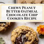 Delicious and chewy Peanut Butter Oatmeal Chocolate Chip Cookies featuring a perfect blend of creamy peanut butter, hearty oats, and rich chocolate chips. These cookies are easy to make and yield a satisfying treat with a delightful texture and flavor balance.