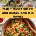 A quick and flavorful Peanut Chicken Stir Fry with noodles, combining tender chicken breast, fresh vegetables, and a rich, creamy peanut sauce. This dish offers a perfect balance of savory, tangy, and spicy flavors with a nutritious twist, ready in just 30 minutes.