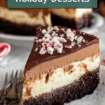 This Peppermint Cheesecake features a rich Oreo cookie crust and a creamy cream cheese filling divided into luscious chocolate and peppermint batters. Swirled together and baked in a water bath to prevent cracking, the cheesecake is topped with a smooth chocolate peppermint ganache and sprinkled with crushed peppermint candies for a festive touch.