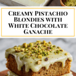 Pistachio Blondies with White Chocolate and Pistachio Ganache Recipe