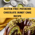 Enjoy a homemade gluten-free Pistachio Chocolate Bundt Cake, a nostalgic and delicious dessert inspired by a classic 1980s recipe. Made from scratch with gluten-free and dairy-free ingredients, this cake features a light green pistachio-flavored batter swirled with rich chocolate, topped with a smooth chocolate ganache and chopped pistachios. Perfect for special occasions or anytime you crave a comforting, old-fashioned cake with a modern twist.