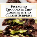 Delight in these decadent Pistachio Chocolate Chip Cookies featuring a luscious pistachio cream center encased in rich cocoa-flavored cookie dough. With a perfect balance of sweet milk chocolate chunks and crunchy pistachios, these cookies are chilling and baking masterpieces, ideal for an indulgent treat with a nutty twist.