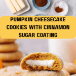 These Pumpkin Cheesecake Cookies combine a soft and spiced pumpkin cookie dough with a creamy cheesecake center, resulting in a delightful and festive treat perfect for autumn or any cozy occasion. The cookies are delicately spiced with pumpkin pie spice and cinnamon, with a sweet cinnamon sugar coating that adds a perfect finishing touch.