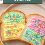 - Add sprinkles: Generously top the colorful stripes with colorful sprinkles to enhance the festive appearance and serve the toast immediately for the best texture.