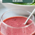 A tangy and sweet Raspberry Vinaigrette made with fresh or frozen raspberries, extra virgin olive oil, red grape vinegar, shallots, Dijon mustard, honey, and seasonings. This vibrant dressing is perfect for salads, adding a fresh burst of fruity flavor with a creamy texture.