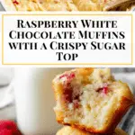 These Raspberry White Chocolate Muffins are moist, fluffy, and bursting with fresh raspberry flavor combined with sweet white chocolate chips. The batter is enriched with Greek yogurt and heavy cream for an indulgent texture, topped with a crispy sugar crust for the perfect morning or afternoon treat. With a unique resting time for enhanced flavor and soft crumb, these muffins bake up beautifully golden with a tender interior.