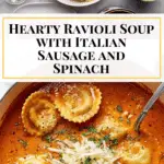 This creamy and comforting Ravioli Soup combines tender Italian sausage, delicate cheese and spinach ravioli, and fresh spinach in a flavorful tomato broth enriched with heavy cream. Ready in just 25 minutes, it’s a perfect hearty meal for busy weeknights that delivers rich Italian-inspired flavors in every spoonful.