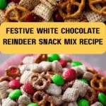 This festive Reindeer Chow recipe is a delightful snack mix perfect for holiday gatherings. Combining crunchy cereals, salty peanuts and pretzels, colorful M&Ms, all coated in a sweet white chocolate coating, it’s easy to prepare and irresistibly tasty. Ideal as a party treat or gift, this no-bake snack mix offers a perfect balance of sweet and salty flavors wrapped in a fun, colorful presentation.