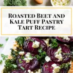 A vibrant and flavorful roasted beet tart featuring flaky puff pastry, tender kale, tangy feta cheese, and a zesty garlic vinaigrette. This easy-to-make tart is perfect as a savory appetizer or light main dish, offering a beautiful blend of earthy beets, crisp greens, and rich cheese all baked to perfection.