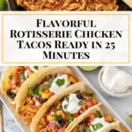 This Rotisserie Chicken Tacos Recipe comes together in about 25 minutes, making it a speedy and satisfying meal perfect for busy days or last-minute dinners.