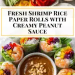 These Shrimp Rice Paper Spring Rolls are fresh, light, and packed with vibrant vegetables, tender shrimp, and delicate vermicelli noodles, all wrapped in soft rice paper. Served with a creamy, tangy peanut sauce that balances sweetness, saltiness, and a hint of spice, they make a perfect appetizer or light meal ready in just 40 minutes.