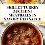 These Skillet Zucchini Turkey Meatballs with Red Sauce are a healthy and delicious meal perfect for weeknight dinners. Lean ground turkey is combined with shredded zucchini, parmesan, and Italian seasonings, then seared in a skillet and simmered in a rich marinara sauce. Served over pasta or with crusty bread, this recipe is easy to make, packed with flavor, and incorporates vegetables in a tasty way.