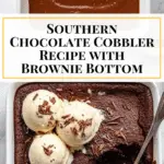 This Southern Chocolate Cobbler features a rich brownie-like bottom layer topped with a gooey, chocolatey crust combined with a hot water soak that creates a luscious, self-saucing dessert. Served best warm with vanilla ice cream, it’s perfect for chocolate lovers seeking comfort and indulgence in one dish.
