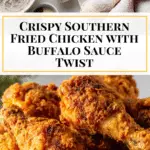 A classic Southern Fried Chicken recipe featuring juicy, tender chicken pieces with a crispy, golden crust. Marinated in a flavorful egg and buffalo sauce mixture, seasoned with a blend of spices, and fried to perfection in peanut oil for a deliciously crunchy and savory dish.