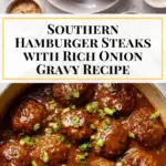 If you’ve ever craved a soul-satisfying, hearty meal that feels like a warm hug on a plate, you are going to adore this Southern Hamburger Steaks with Onion Gravy Recipe. It’s the perfect blend of juicy, well-seasoned ground beef patties smothered in a rich, savory onion gravy that’s packed with flavor and just a touch of sweetness. This dish captures old-fashioned Southern comfort food at its best — simple to prepare but incredibly delicious and sure to become a family favorite that brings everyone to the table with a smile.