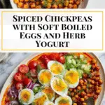 This Spiced Chickpeas and Soft-Boiled Eggs with Herb Garlic Yogurt and Tomato Cucumber Salad Recipe is one of those rare dishes that feel both refreshing and deeply satisfying, perfect for lunch, dinner, or whenever you’re craving something wholesome yet exciting. With layers of flavor, texture, and brightness, it’s a recipe you’ll want to return to time and again. I’m so excited for you to try it and watch how it becomes your new favorite go-to meal!