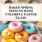 Delight in these festive spring donuts, perfectly soft and moist with a colorful pastel glaze and decorated with Easter sprinkles and mini eggs. Baked to golden perfection, these donuts are an easy and fun treat to celebrate the season.