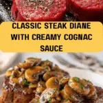 Steak Diane is a classic, elegant dish featuring tender filet mignon steaks cooked to perfection and served with a rich, creamy pan sauce made from cognac, Dijon mustard, mushrooms, shallots, and reduced beef stock. This recipe highlights a perfect sear on steaks paired with a flambéed sauce that offers sophisticated flavors, ideal for a special dinner.