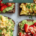 This Quick & Easy Strawberry Avocado Toast is a delightful and nutritious breakfast option that combines creamy avocado, sweet balsamic strawberries, scrambled eggs, and crunchy pine nuts on toasted Ezekiel bread. Perfect for a wholesome start to your day with a balance of fresh flavors and textures.