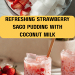Strawberry Sago is a refreshing and creamy dessert featuring small tapioca pearls cooked to perfection, blended with fresh strawberries and rich coconut milk. Enhanced with chewy coconut jellies, this chilled dessert is perfect for hot days and sets a delightful balance of sweet tropical flavors and textures.