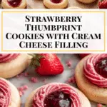 Delight in these luscious Strawberry Thumbprint Cookies featuring a buttery shortbread base, homemade strawberry jam, and a creamy strawberry cheesecake filling. Perfectly sweet and tender with a burst of fruity flavor, these cookies are a crowd-pleaser for any occasion.