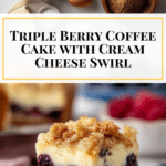 This Triple Berry Coffee Cake features layers of moist cake batter, fresh mixed berries, and a creamy cheesecake filling, topped with a crunchy cinnamon crumb topping and a light glaze. Perfect for breakfast, brunch, or a sweet snack, this delightful coffee cake blends the tartness of blueberries, raspberries, and blackberries with the rich cream cheese filling and cinnamon-scented crumb. Baked in a springform pan, it’s easy to assemble and impressive to serve.