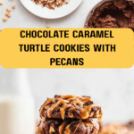 Deliciously rich Turtle Cookies combine chocolate chip cookie dough enhanced with cocoa powder, studded with crunchy pecans and topped with smooth caramel drizzle for an indulgent treat perfect for any occasion.