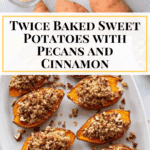 - Assemble and bake again: Spoon the sweet potato filling back into the potato skins evenly. Sprinkle the pecan and oat topping over each filled potato half. Return the baking sheet to the oven and bake for an additional 10 minutes, or until the oats and pecans are toasted and fragrant.