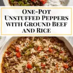 A comforting and flavorful unstuffed peppers recipe that captures all the deliciousness of traditional stuffed peppers without the hassle of filling each pepper. Ground beef, bell peppers, rice, and tomatoes are simmered together with fragrant spices, then topped with melted cheddar and fresh parsley for a satisfying one-pot meal.