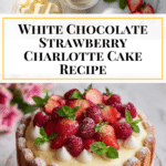 This White Chocolate Strawberry Charlotte Cake is an elegant and refreshing dessert featuring layers of ladyfingers soaked in a simple sugar syrup, luscious white chocolate mascarpone mousse, and fresh strawberries. Perfect for a special occasion or a summer treat, this no-bake cake combines creamy textures with bright, fruity flavors and a delicate presentation.